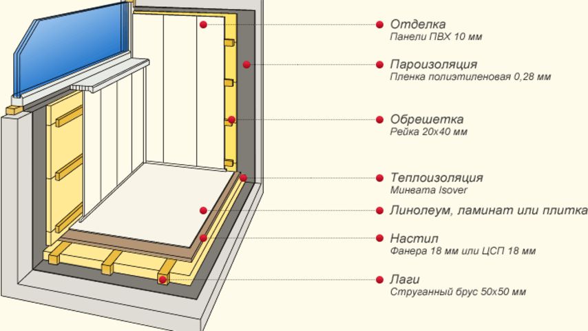 Схема утепления пола лоджии