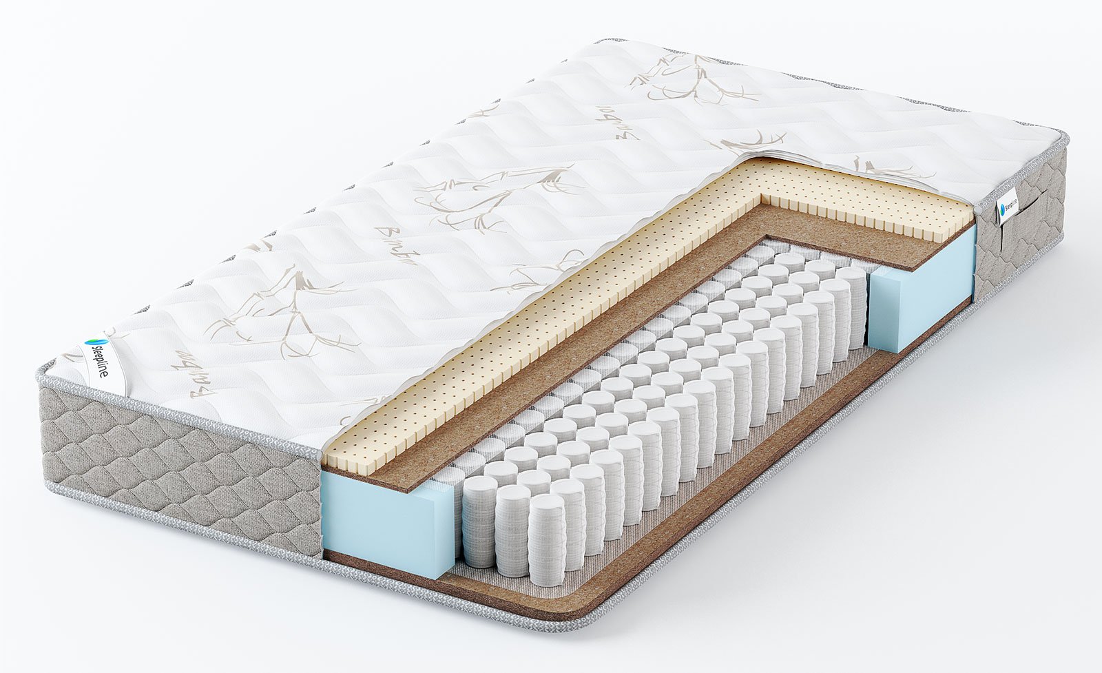 Они не вредят здоровью, более устойчивы к растягиванию, обладают правильной поддержкой тела пользователя в любом положении (лежа на боку, спине, животе, сидя). Однако если они будут мягкими, матраса надолго не хватит: оптимальное количество пружин на метр должно быть не менее 500 – 600 элементов. Кроме основы, хороший блок дополнен слоем перфорированного латекса и кокосовой койры (более чем 1 см).