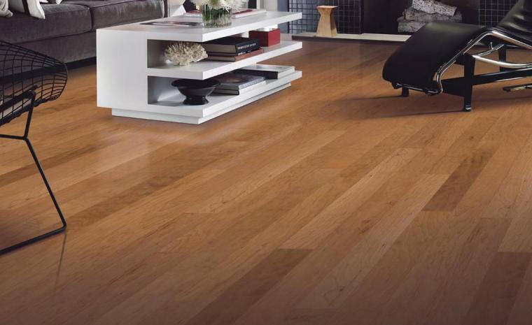 - Легкость в уходе. Финишный внешний слой поверхности защищает пол от разводов в случае попадания на покрытие жидкости. Кроме того, материал не боится влаги и моющих средств, поэтому ухаживать за ним легко;
